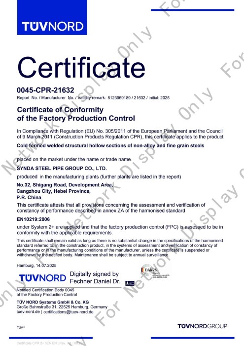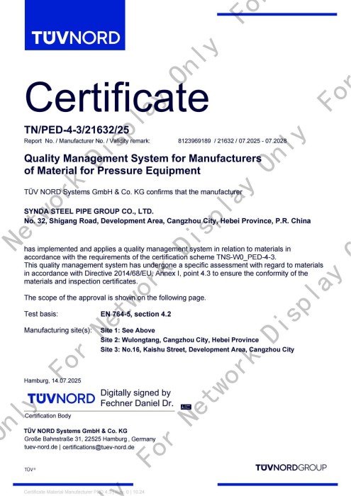 Synda Steel Pipe Group Co., Ltd. was established in July 2003 and is located in Cangzhou Economic Development Zone, Hebei Province, China. It covers an area of 400,000 square meters and has a registered capital of 181 million yuan. It is an industrial and commercial enterprise that integrates the production and anti-corrosion processing of spiral steel pipes, as well as the operation and sales of seamless steel pipes, coils, strip steel and other types of steel. The company currently has over 400 employees, including more than 120 personnel with intermediate and senior technical titles.